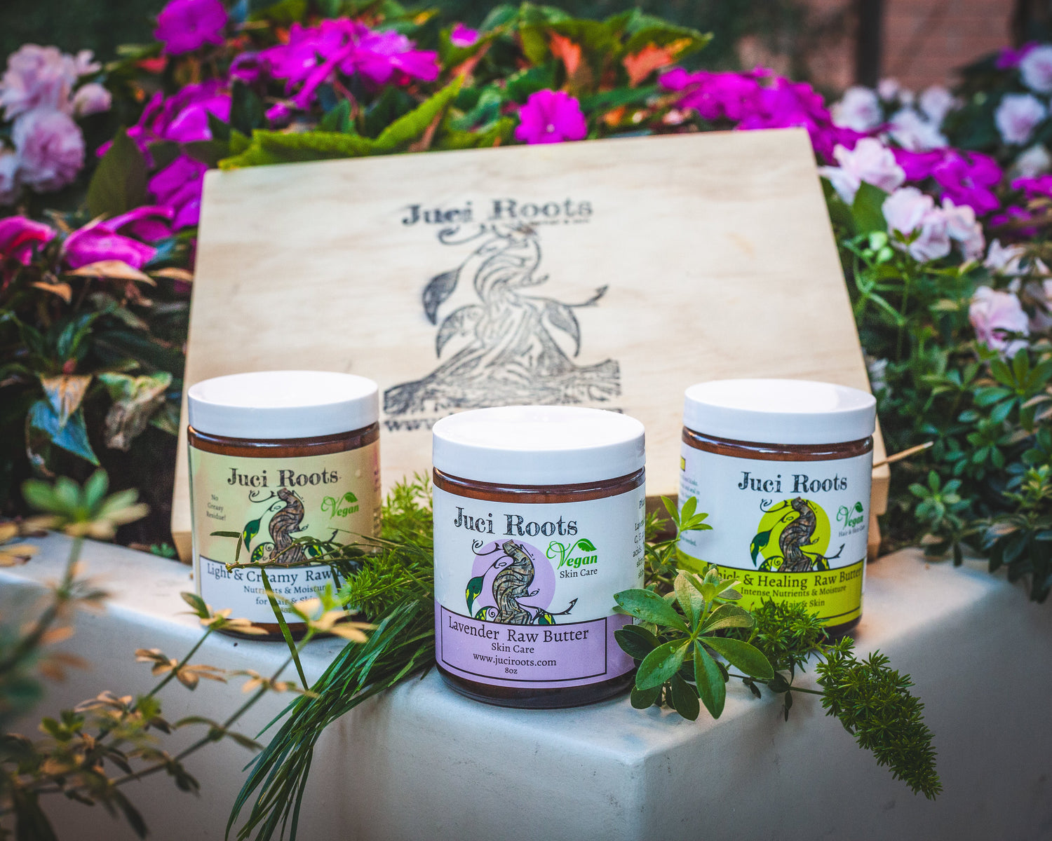At Juci Roots, we believe that nature provides everything needed to nourish and heal. Our formulations are 100% plant-based, using only the finest ingredients straight from nature. We’ve discovered that a few, carefully selected ingredients can go a long way. Our products are crafted with shea butter, olive oil, coconut oil, jojoba oil, Jamaican black castor oil, sweet almond oil, apricot oil, spearmint essential oil, lavender essential oil, vitamin B-7 (biotin), cocoa powder, bamboo powder, turmeric, bentonite clay, rosehip essential oil, coconut sugar, paprika, baobab powder, and lemongrass essential oil.